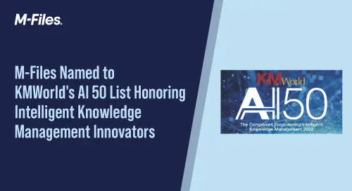 M-Files Named to KMWorld’s AI 50 List Honoring Companies that Empower Intelligent Knowledge Management