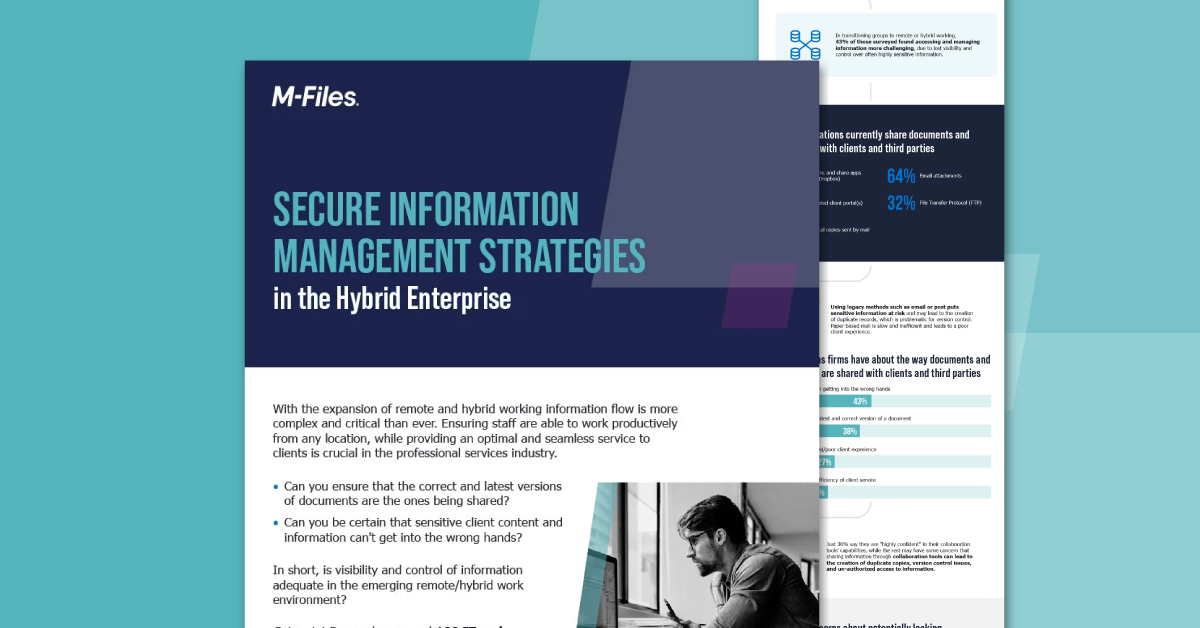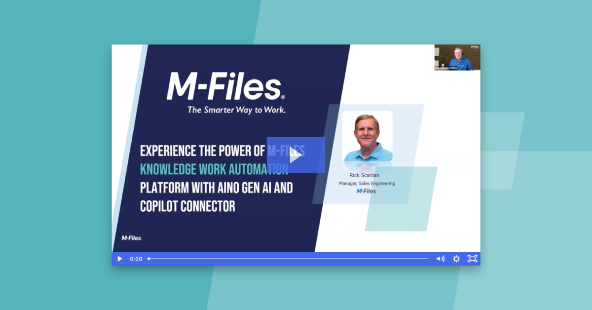 Consulting Context-First Document Management Webinar | A Deep Dive: Unlocking the Power of M-Files and Microsoft 365 partnership Shaping the future of work with M-Files & Microsoft – Jaime De Mora, Microsoft CTO Enhance Your Digital Experience with M-Files & Microsoft Copilot PKF Francis Clark M-Files Showcases M365 Enhancements for AIIM Demo Days The Smarter Way To Work With M-Files Empower your organization with the M-files Connector for Copilot Unleash the power of our AI assistant, M-Files Aino Enabling Knowledge Workers with AI White paper: Unlocking the Power of Generative AI with Microsoft 365 Enabling Knowledge Workers with AI Using Knowledge as a Competitive Advantage: Capturing and Leveraging Intellectual Capital Unlocking the value of Knowledge Work Automation Collaborate, Increase Productivity & Efficiency in a World of Content Chaos Document Automation: Scaling New Heights in Legal Efficiency vem.die arbeitgeber M-Files Hubshare: Seamless and Simplified Content Collaboration Crowe UK Decoding Document Automation M-Files Ment – Clause Library Discover why our customers love M-Files Ment Secure Information Management Strategies in the Hybrid Enterprise The Case for a Knowledge Management System 2 Keys to a Healthy, Future-Proof Business Consulting Firm Practice Risk Intelligence Verkís